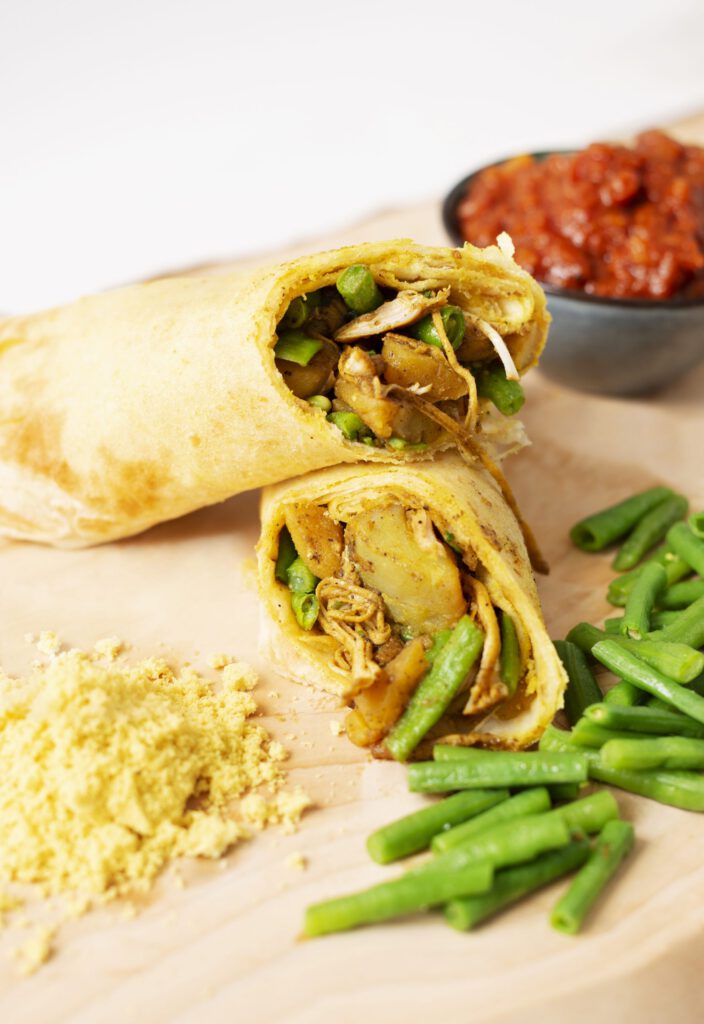 Met onze kant-en-klare roti kit haal je alle ingrediënten in huis om zelf thuis authentieke roti te maken. Na het bereiden van het deeg, vul je de roti met dahl van gele spliterwten. Even bakken in een koekenpan en ready-to-serve. We laten het je graag zien: