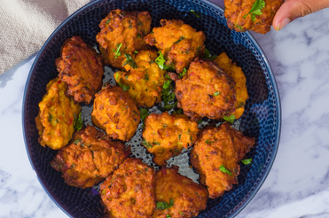 Gefrituurd deegballetje gemaakt van verschillende groenten, specerijen en kikkererwtenmeel met oneindig veel variatiemogelijkheden. Ontdek meer >