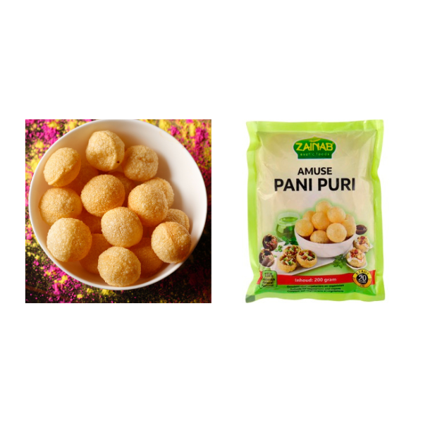 Het proces van het maken van pani puri is best een uitdaging. De puri wordt gemaakt door bloem en griesmeel met water te mengen tot een deeg. Het deeg wordt vervolgens uitgerold tot kleine cirkels en gefrituurd tot ze knapperig zijn. Omdat het maken van de pani puri best een uitdaging is, hebben wij bij Zainab Foods kant-en-klare plakjes die je alleen nog hoeft te frituren. Deze plakjes frituur je in hete olie op 170°C. Na enkele seconden transformeren de plakjes in gepofte balletjes welke je regelmatig even moet omdraaien met een schuimspaan. Na het frituren maak je voorzichtig een gaatje in het balletje en vul je deze naar eigen keuze en smaak.